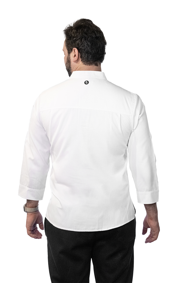 Discover the elegance of this exclusive chef jacket made from a fresh and lightweight fabric, ensuring hours of comfort both inside and outside the kitchen.